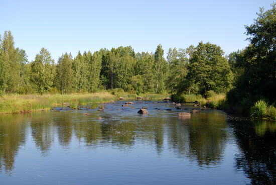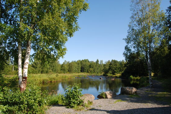 Ein schöner Morgen! Das Flüßchen Merikarvianjoki lag malerisch im Sonnenschein. Wir machten uns in aller Ruhe startklar. Über die schmalen Wege des Angelgebietes fuhren wir zurück zur E8.