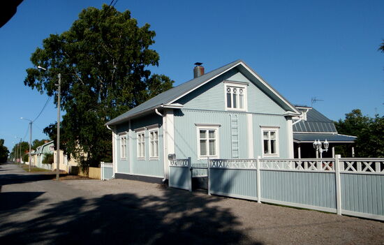 Kaskö - Kaskinen. Auch dies ist eine kleine Holzhausstadt, die kleinste Stadt Finlands. Wir fuhren nun im Zickzack durch die Straßen und sahen uns die Holzhäuser an.