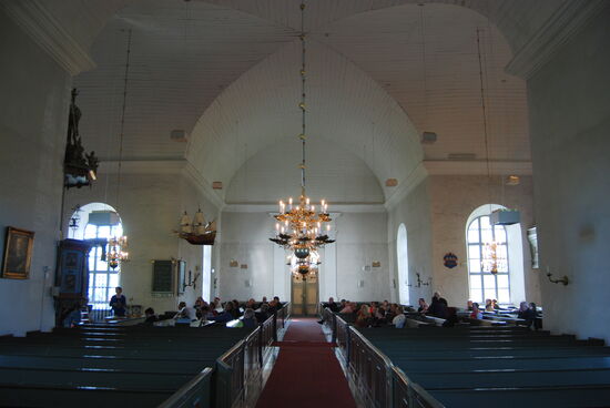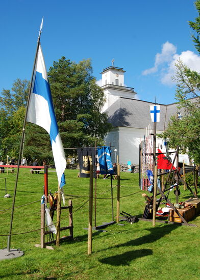 Beherrscht wurde der Platz jetzt von einer Steinkirche. Diese wurde wohl um 1550 aufgeführt und in den 1700er Jahren mehrfach ausgebaut. Es ist das älteste historische Gebäude in Karleby. Vorher gab es hier wohl eine Holzkirche.