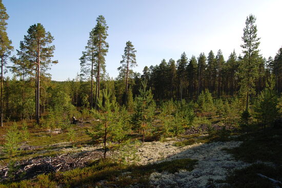 Bald bogen wir landeinwärts ab in den Wald. An einigen Stellen gab es Rentierflechte. Das sah aus, als liegt dort Schnee. Nach einer Weile kamen wir an einem verlandenen See vorbei.