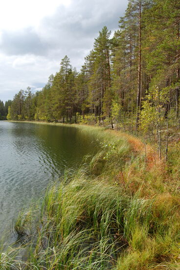 Wir wanderten weiter. Teilweise ging es steil bergab. Bohlenwege und Holztreppen ließen sich aber gut begehen. Bald erreichten wir den See Pitkäjärvi. Der Wanderweg führte um den See herum. An vielen Stellen gab es Rastplätze, die wir immer mal wieder ausnutzten. Am Südende lag eine große Grillhütte, die auch direkt von einem Parkplatz erreicht werden konnte.