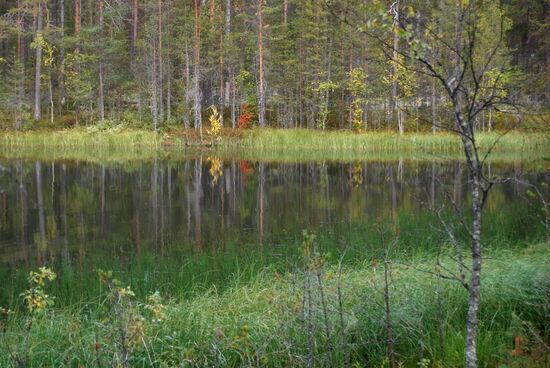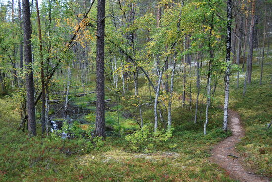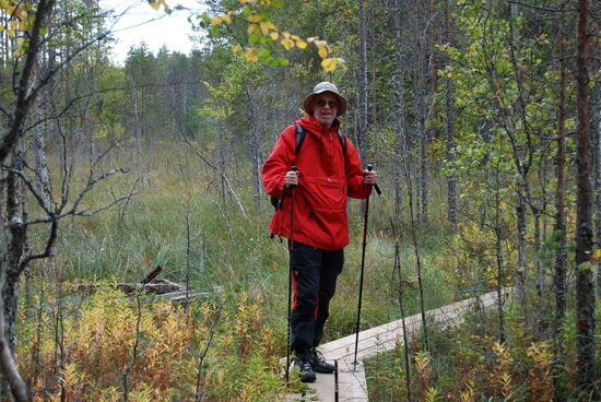 Wir gingen weiter am See entlang, teilweise über Bohlenwege. Unterwegs konnten wir ab und zu Blaubeeren naschen. Bald hatten wir den nächsten kleinen See Hätäjärvi erreicht. Auf dem weiteren Weg gab es wieder Holztreppen. Das war nicht nur angenehm für uns, sondern schützte auch den empfindlichen Untergrund vor den Wanderstiefeln.