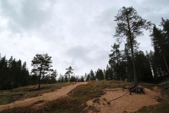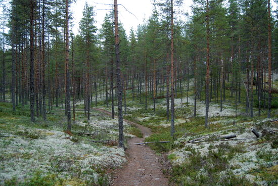 Wir fuhren auf kleinen Straßen praktisch um das ganze Gelände herum durch lichten Wald. Wenn nicht überall weiße Flächen mit Rentierflechte zu sehen gewesen wären, hätte man sich an die Mark Brandenburg erinnert gefühlt.
