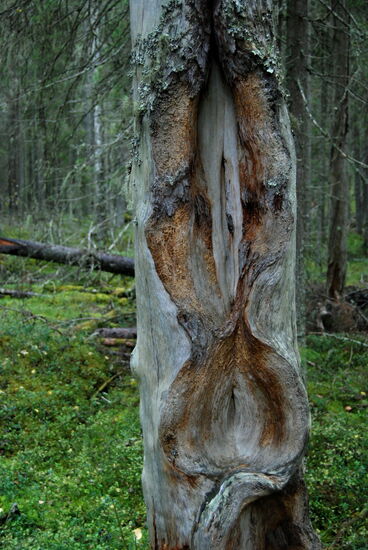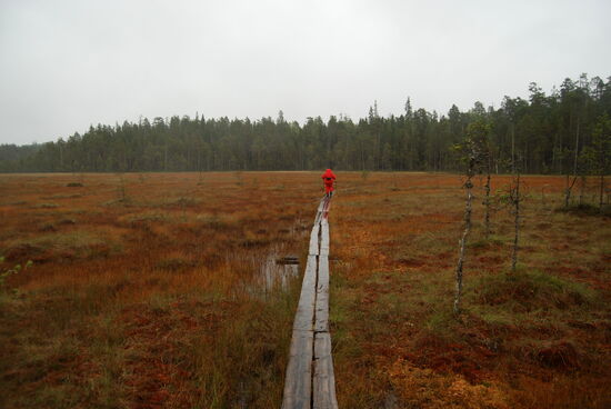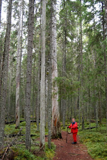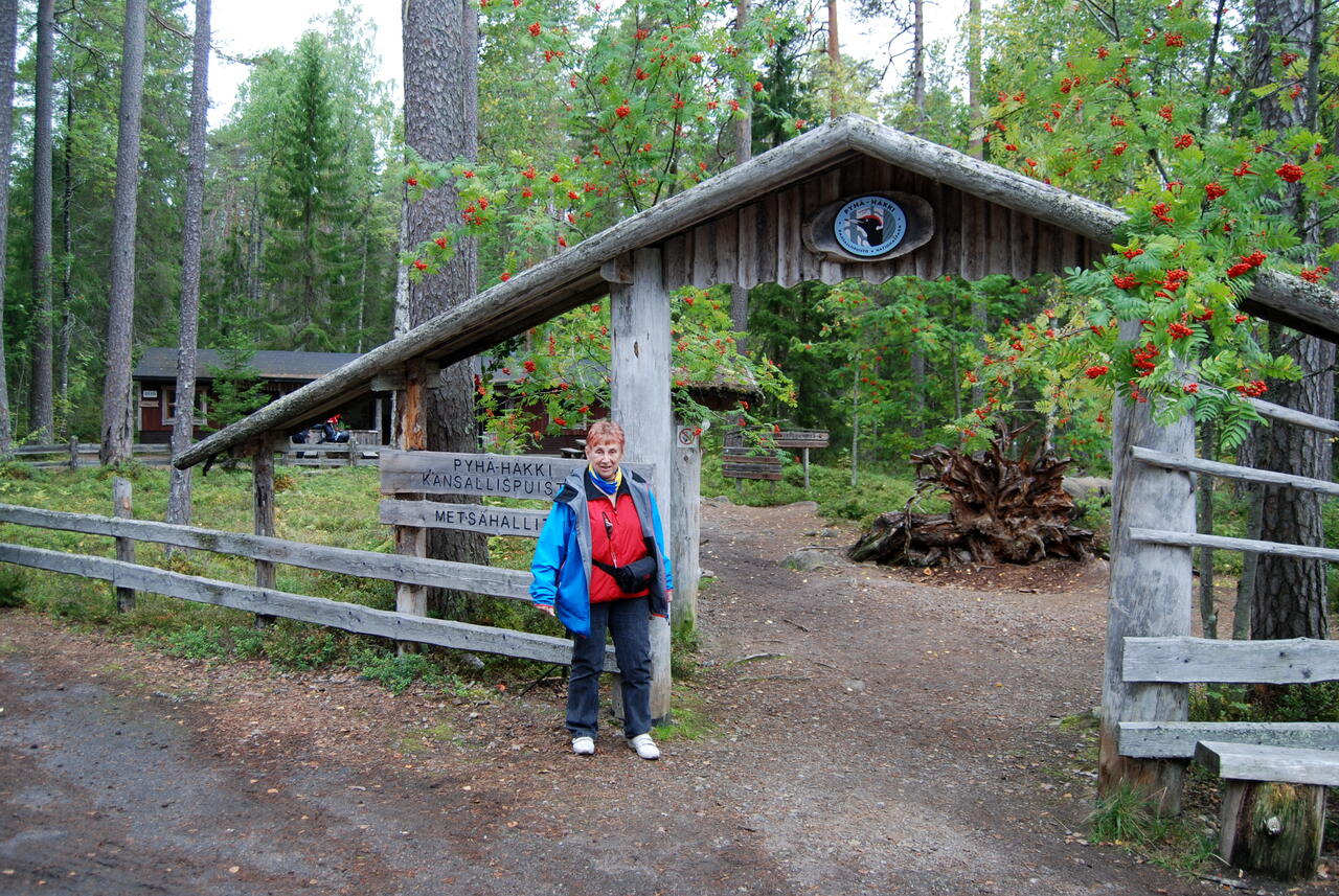 Wir fuhren ein ganzes Stück auf der 4/E75 in Richtung Süden. Kurz hinter Viitasaari bogen wir auf die 77 in Richtung Westen ab, um kurz darauf auf der 6510 wieder nach Süden zu fahren. Nun war es nicht mehr weit bis zu unserem Ziel, dem Nationalpark Pyhä-Häkki. Der Nationalpark besteht je zur Hälfte aus Moor und Wald. Der Urwald wurde schon 1912 unter Naturschutz gestellt und 1956 zum Nationalpark ernannt. Besonders viele Vögel sind hier heimisch. Der Schwarzspecht ist als Charaktervogel dargestellt. Es gab drei Wanderstrecken, 3,2km, 6,5km und 16km. Wir gingen die mittlere, die alle wichtigen Natursehenswürdigkeiten berührte.