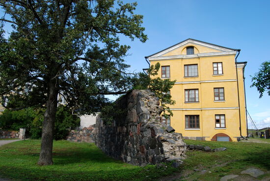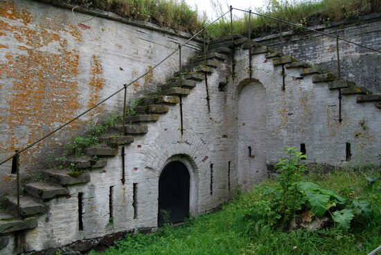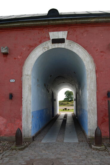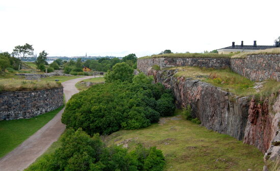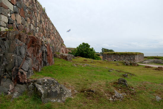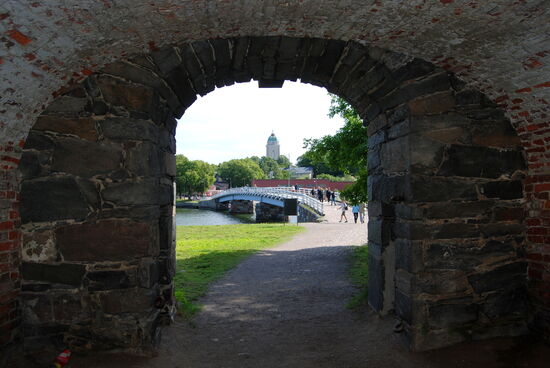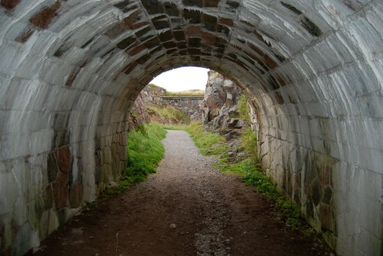 Nachdem wir uns die Ausstellung ausgiebig angesehen hatten, gingen wir zur Vargön hinüber. Unser Ziel war zunächst das riesige Trockendock. Zurück am Hauptweg führte der Weg bergan und durch die Bastion Höpken, deren Kasematten wir uns ansahen. Im Innenhof lag das Grab des Erbauers von Sveaborg, Augustin Ehrensvärd.