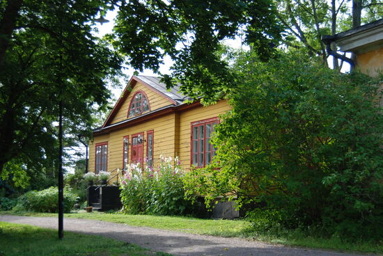 Gleich neben der Hauptbrücke, wo die Fähre anlegt, geht es zu einer weiteren Insel hinüber. Hier auf Lilla Öster Svartö ist die Seekriegsschule untergebracht. Wir machten einen Rundgang über die Insel zwischen den alten Gemäuern. Dann gingen wir wieder über die Brücke auf die Hauptinsel. Vom Uferweg aus hatten wir schöne Ausblicke auf Lilla Öster Svartö und Väster Svartö. Am Gebäude des See-Grenzschutzes vorbei kamen wir an den Kanal zwischen den Inseln Stora Öster Svartö und Vargön mit den alten Hafen- und Werftanlagen. Weiter gingen wir an kleinen Wohnhäusern entlang, hier gab es sogar einen Kindergarten, bis zum Hauptweg vor. Wir kreuzten den Weg, machten noch einen Abstecher zum Kriegsmuseum. Rainer machte hier einen Rundgang, die Eintrittskarte des Ubootes galt hier auch, während es sich Christa in der Sonne auf einer Parkbank gemütlich machte. Danach setzten wir unseren Rundgang über diesen Teil der Insel fort und erreichten schließlich das Museum an der Brücke zwischen den beiden Hauptinseln.
