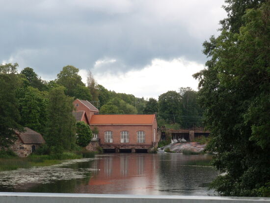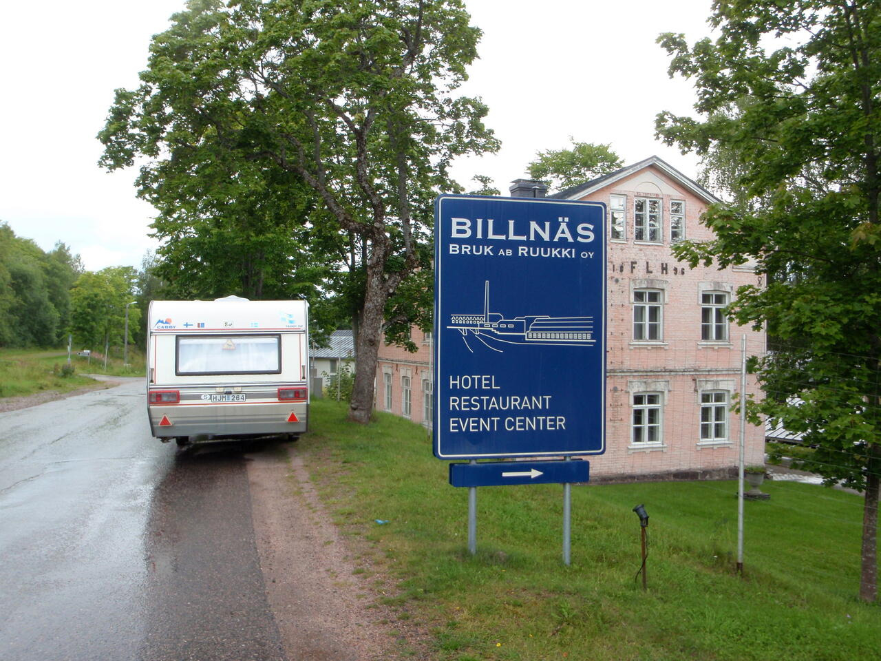 Zunächst fuhren wir vom Campingplatz auf einer Ringstraße durch Helsingfors. Kurz bevor wir die autobahnartig ausgebaute 51 erreichten, mußten wir noch einige Baustellen bewältigen. Dann ging es weiter in Richtung Westen. Als die 51 auf die 25 stieß, erreichten wir Karis. Hier verließen wir die Hauptstraße und fuhren durch den Ort, denn wir wollten uns das alte Eisenwerkdorf Fiskars ansehen. Auf dem Weg kamen wir an der zweitältesten Eisenhütte Finlands von 1641, Billnäs, vorbei. Bis auf eine Informationstafel mit Hinweisen auf die alten Häuser war dort nicht viel zu entdecken.