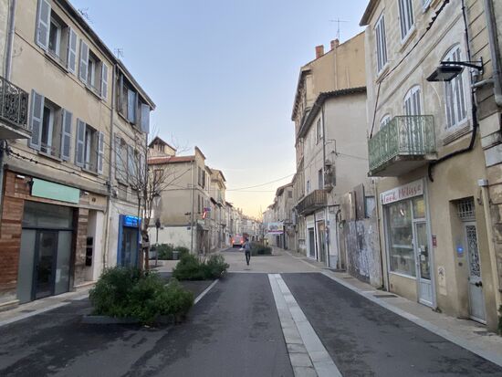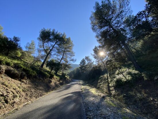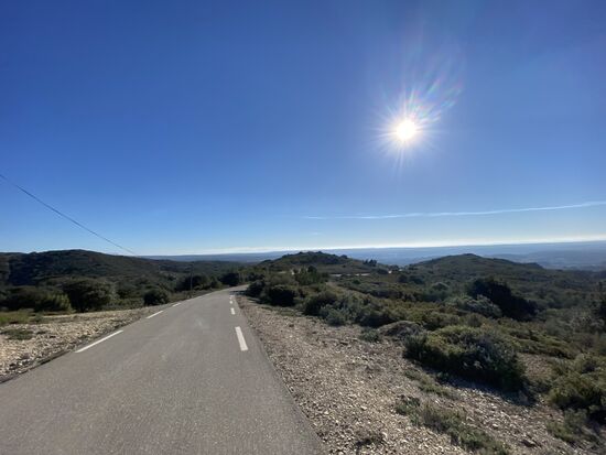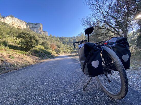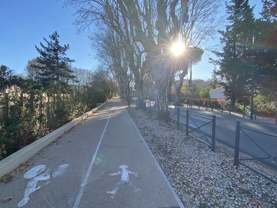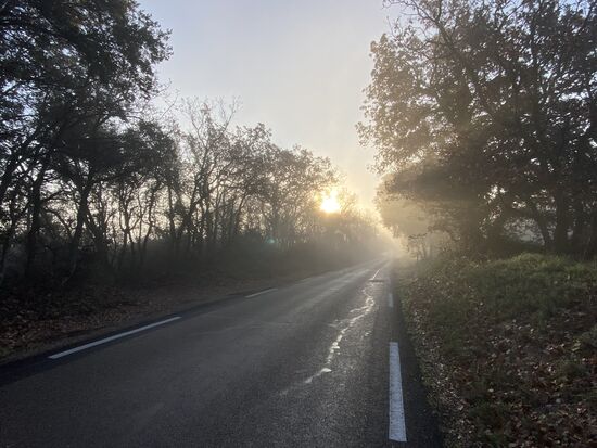 Avignon erwacht, Eiskristalle bilden sich auf den Härchen meiner Hände und zwei Pain aux chocolate befinden sich in meiner Satteltasche. Es ist die letzte Etappe, heute werde ich das Mittelmeer sehen. Ich stehe auf der Allee du Héron, trinke den weißen Weihnachtspunsch-Tee, esse ein Pain au Chocolate, werde von drei Radreisenden überholt und habe kalte Füße. Nebel hängt über der Landschaft, ich höre Alan Watts und einen gefährlich klingenden Hund in der Nachbarschaft bellen.