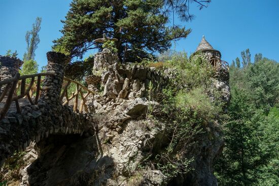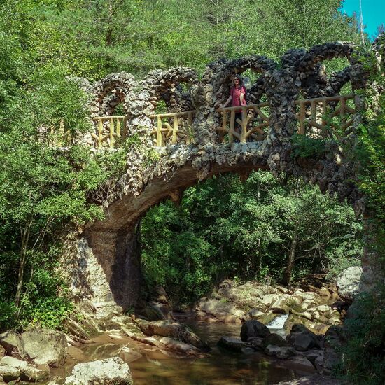 Die Bahn hält an einem von Antoni Gaudi entworfenen Garten, den man gegen eine kleine Eintrittsgebühr besichtigen kann