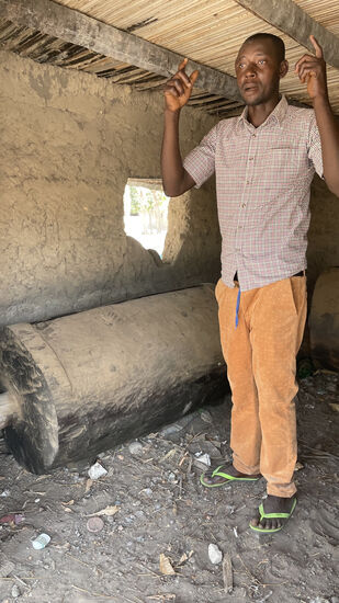Nun besuchen wir noch das „Mlomp house“ - das Lehmhaus. Es ist komplett aus Lehm gebaut. Ein alter Mann lebt darin und zeigt es gern gegen eine kleine Spende