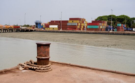 Wir lassen das Krankenhaus hinter uns und fahren zum Hafen. Der Zugang zum Hafen ist so ohne weiteres nicht möglich. Eine Security-Kraft verweigert uns den Zugang. Lamin gibt sich aber nicht zufrieden und wir gehen in das Gebäude der Hafenverwaltung. Wir laufen durch mehrere Büros und sitzen dann irgendwann am Schreibtisch des Chefs des Hafens,. Lamin erzählt ihm, dass wir Touristen seien und gerne den Hafen besichtigen möchten. Es wird lange diskutiert, ein weiterer Mitarbeiter mischt sich ein, letztendlich bekommen wir die Genehmigung, das Hafengelände zu betreten und zu besichtigen.