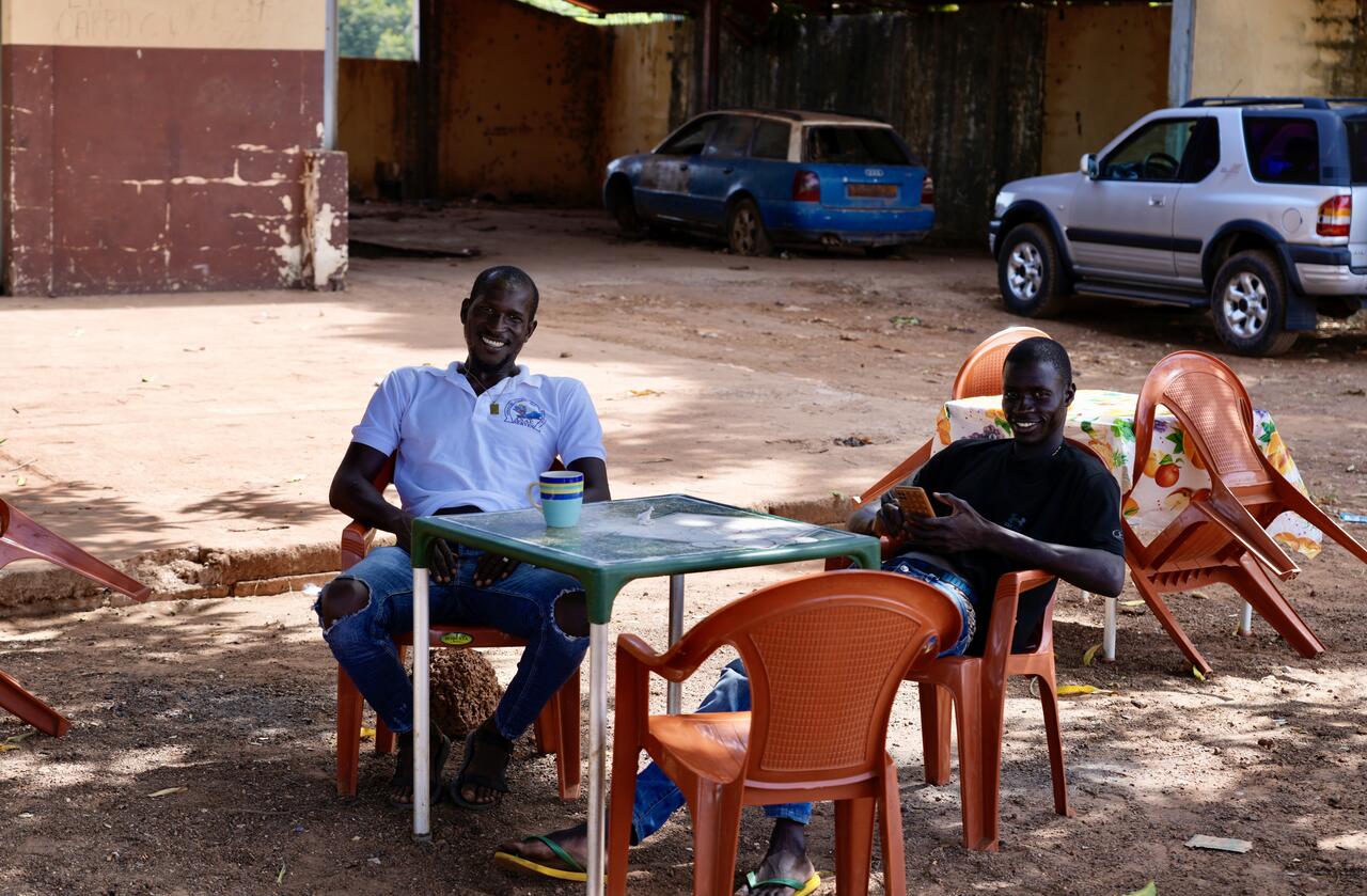 Lamin und der Fahrer. Sie kennen die Damen, die den Imbiss betreiben offensichtlich. Unser junger Fahrer ist bei dem Mädel wohl seit einiger Zeit am baggern..