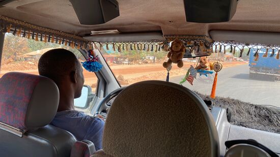 Der Weg zur Landesgrenze—-es gibt natürlich keine AC—-und man kann kein Fenster öffnen, sonst kommt der ganze Staub rein