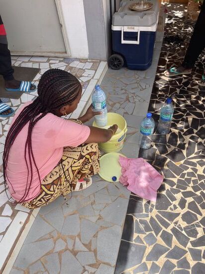 Nun haben wir so viel, dass wir ein Taxi zurück nehmen. Die Fahrt kosten knapp 2 Euro. Zwischenzeitlich ist auch Dawda zum Haus gekommen. Er war über Nacht bei sich Zuhause.