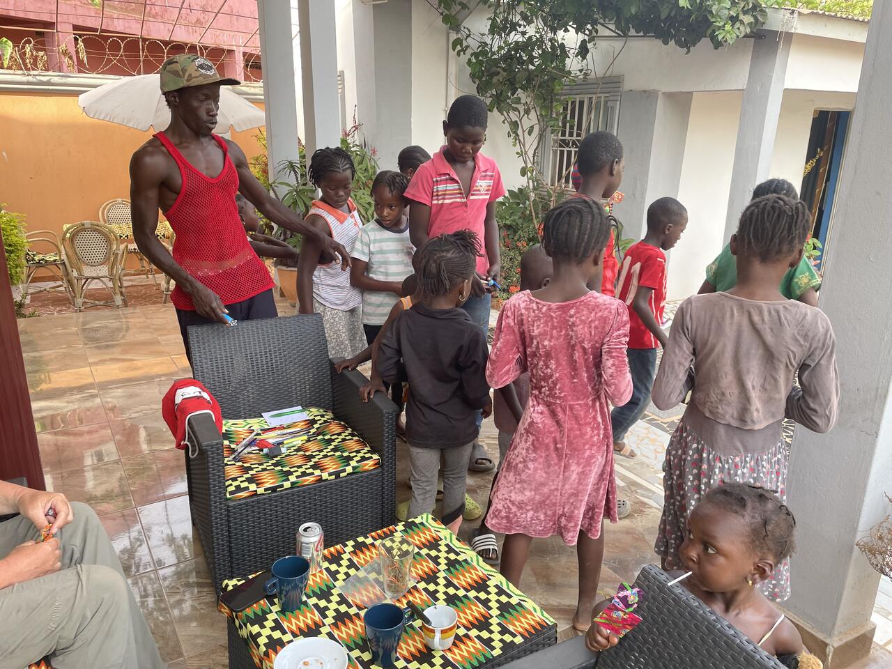 Sie sind wirklich ganz süß und bescheiden. Erstmal werden wir mit Handschlag begrüßt und dann schauen sie mit großen Augen auf die Sachen…