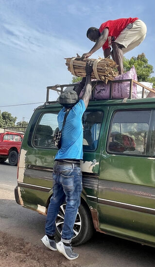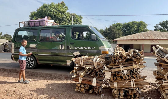 Dawda möchte auch noch Holz kaufen—auch so etwas findet man am Straßenrand-wir stoppen erneut, als Dawda die Verkäufer erkennt.