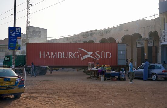 Sobald sie uns erkennen, kommen noch mehr dazu. Ein Sack soll 250 GMD kosten.