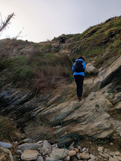 Wir hatten es vorher schon gelesen, dass die erste Etappe mit 20 km seine Herausforderung durch den vielen losen Sand hat...oh ja, viele km sind wir durch den losen Sand gestapft und vor allem bergauf war das sehr kraftraubend. An den Strandabschnitten konnten man dagegen gut auf dem festen nassen Sand laufen (wir hatten Ebbe).