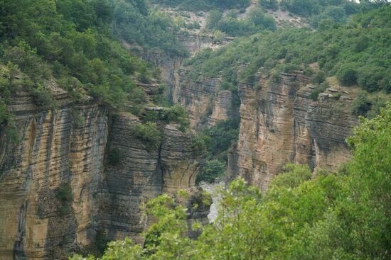 Heute Nachmittag hatten wir versucht, die Off-Road Strecke zwischen Berat und Përmet zu fahren. Die Strecke oberhalb der Osum-Schlucht wird von vielen Reisefahrzeugen befahren und bietet an mehreren "View-Points" atemberaubende Ausblicke in den tief in die Landschaft eingefressenen Canyon, der hier auch der "Grand Canyon" genannt wird. Die Straße nach Përmet ist gut ausgebaut, leicht auch mit großen Fahrzeugen zu befahren, bis zu dem Abzweig, an dem ein Schild mit einem durchgekreuzten PKW und der Hinweis 4x4 darauf hindeutet, dass die weitere Straße nur noch mit Fahrzeugen mit Allradantrieb zu befahren ist.
