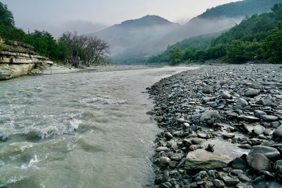 Um nicht in einem reißenden Schlammweg stecken zu bleiben haben wir unser Vorhaben zunächst abgebrochen, haben unten am Fluss hier den kiesigen Strand gefunden, an dem wir das Unwetter abwarten und den Abend beschließen wollen. Die Aufregung des Tages hat sich gelegt. Frieden ist in uns wieder eingekehrt.