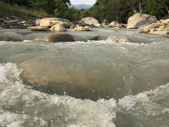 liegen wir in einem warmen, über große Steine hüpfenden Bach. Wir haben die planierte Straße wieder erreicht, haben unseren Geländewagen auf einem brach liegenden Feld abgestellt und die Wassertemperatur des lustig plätschernden Bergbaches geprüft.