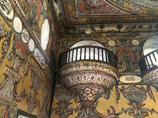 Wir stehen unter der riesigen Kuppel, die sich über den roten Teppich spannt. In unzähligen feinsten Details ist das gesamte Halbrund über uns ausgemalt, und auch die Wände der Moschee sind bis ins Äußerste aufwändig farbig dekoriert. Es ist überwältigend. Wir stehen ehrfurchtsvoll und staunend in dem stillen Raum. Keine Personen, keine Gesichter sind hier abgebildet, nur Arabesken, Blumen und Ornamente in klaren Farben mit klaren Konturen.