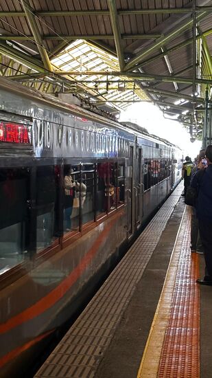 Am Bahnhof ziehen wir uns mit der Reservierungsnummer unsere Tickets und dann genehmigen wir uns ein kleines Frühstück