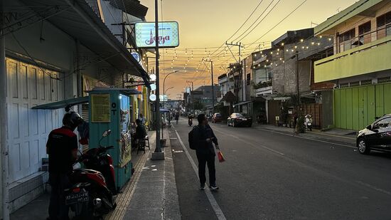 Dabei führt uns der Weg über die „Malioboro“ - das ist die hier bekannte Einkaufs- und Fressmeile. Schon jetzt um 16 Uhr ist viel los, aber das soll gegen Abend noch viel mehr werden.