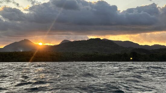 …und es wird dunkel und nochmal spannend. Denn unser Käptns hat sich nicht zeigen lassen wo das Licht am Boot angeht—so müssen wir unsere Anlegestelle im dunkeln finden…