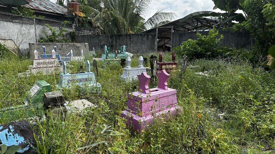 Da sitze ich noch, während Thomas die Fotos vom Friedhof macht….