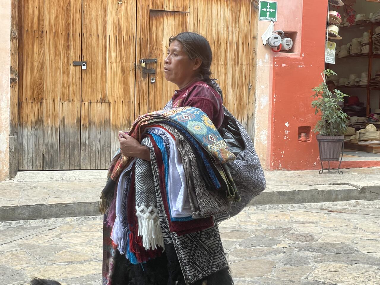 Die Farben der Tücher sind zwar auch schön, eher dezent, und lang nicht so leuchtend wie die Farben in Guatemala. Später entdecke ich einen ganzen Laden mit Tüchern, die alle hier in Chiapas hergestellt wurden. Die meisten sind Handarbeiten und oft in Erdfarben. Weniger künstlich wahrscheinlich. Die Unterschiede sind frappant.