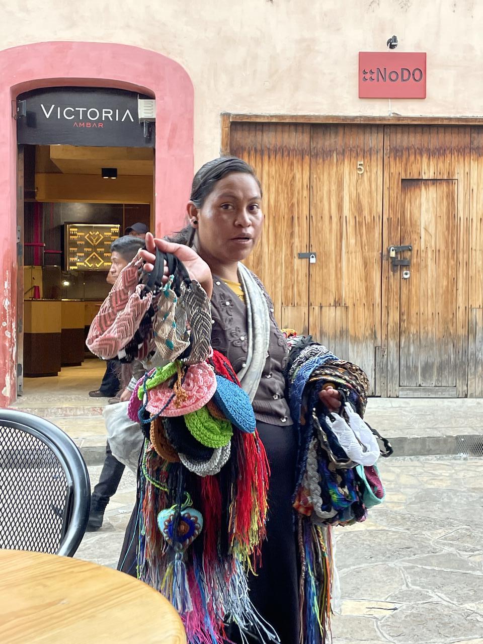 Sie mischen sich ein, halten mir ihre Halsketten, ihre kleinen Handarbeiten und ihre Schals und Tücher vors Gesicht und lassen sich kaum abweisen. No, Gracias wird zu einem ständigen Satz, den ich selber kaum mehr bemerke. Ich hüte mich auch, die Angebote anzusehen, denn sonst wird es erst recht schwierig. Ich will nichts kaufen, ich möchte jetzt nur einfach dasitzen, mt meiner Schwester plaudern, die Strasse beobachten. Und manchmal fotografieren.