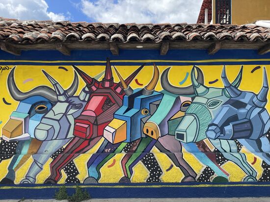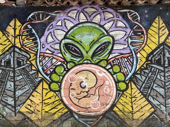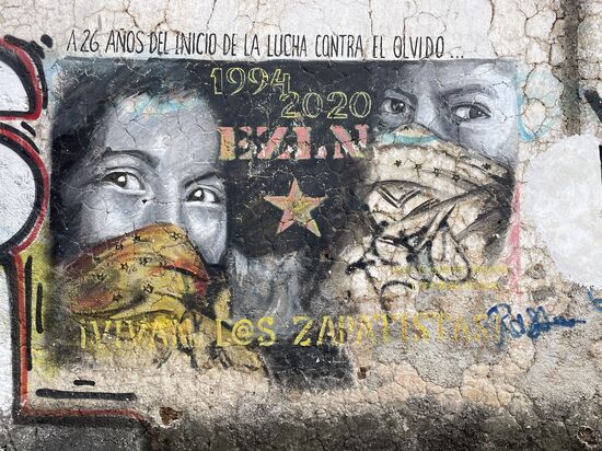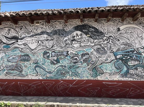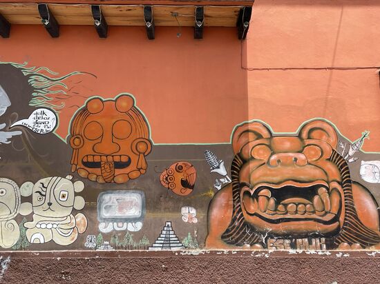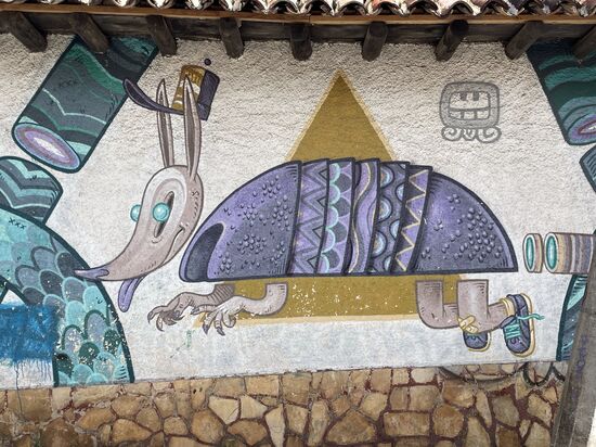 Auf meinen Bummeln durch die Stadt finde ich vor allem in den Quartieren ausserhalb des Zentrums immer wieder Graffitis. Sie sind komplett anders als in Guatemala. Nicht mehr so farbig und realistisch. Es sind eher intuitive Bilder. Hinweise auf die Maya-Kultur und manchmal politische Statements. 1994 wurde die Bewegung der Zapatisten hier gegründet, die sich vor allem gegen die Armut der Mayas in Chiapas wehrt. 2003 wurde die Stadt San Cristoball eingenommen. Seither ist es wieder ruhiger geworden. Da die Armut aber noch immer allgegenwärtig ist, brodelt es wahrscheinlich noch immer unter der friedlichen Oberfläche.