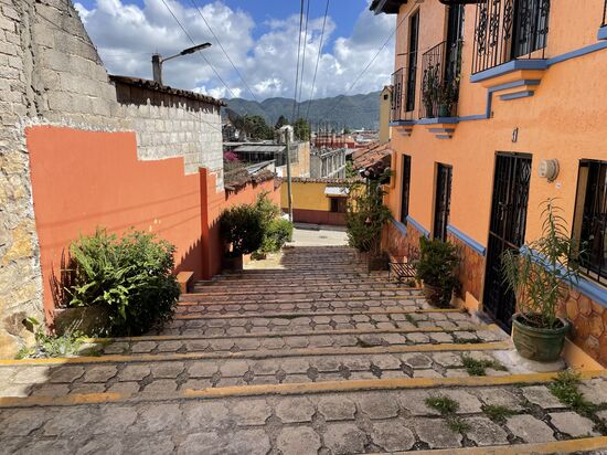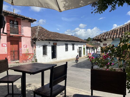 Den allerletzten Abend verbringe ich im Maruch, einem kleinen Lokal nur zwei Türen weiter von meinem Hotel. Es ist liebevoll eingerichtet mit Kissen auf der Eckbank und Lilien auf den Tischen. Geführt wird es von einem Mann, der nicht nur den Service selber bestreitet, er kocht auch gleich selber. Und bringt mir ein Amuse bouche, um mir die Wartezeit zu verkürzen. Ein richtig schöner Abend nach einer spannenden Woche in San Cristobal de las Casas. Ich war manchmal etwas müde hier, die vielen Eindrücke der letzten zwei Monate fordern ihren Tribut.
