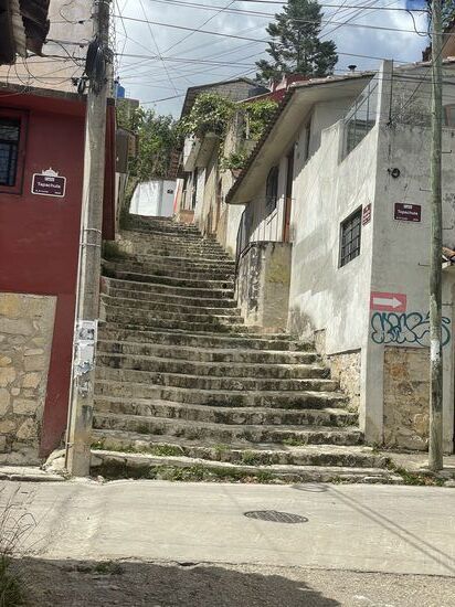 Die Stadt ist voller Treppen. Überall geht es hinauf und hinunter. Zu Sehenswürdigkeiten, in andere Qartiere. Auch die Strassen haben verschiedene Nivels. Es sind endlos lange Strassen, die manchmal von Treppen unterbrochen werden. Sobald man das Zentrum mit seinen vielen Cafes, Boutiquen und Restaurants verlassen hat, wird es ruhig. Da gibt es nur noch manchmal kleine Läden, die alles anbieten für den täglichen Bedarf. Die Strassen sind meist Einbahnstrassen, für Gegenverkehr bleibt kein Platz. Strassenbelag können grobe Steine, flache Verbund-Platten oder runde Steine sein. Die Gehsteige sind unterschiedlich hoch und überall unterbrochen. Es empfiehlt sich unbedingt, die Augen auch darauf zu richten, wohin man tritt, denn unverhofft steht man vor hohen Stufen, herausragenden Eisenteilen oder Löchern in Strasse oder Gehsteig.