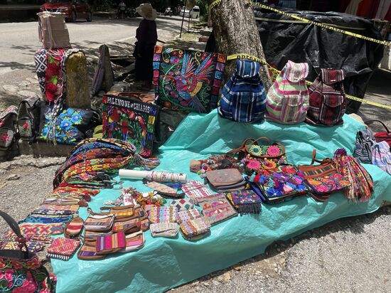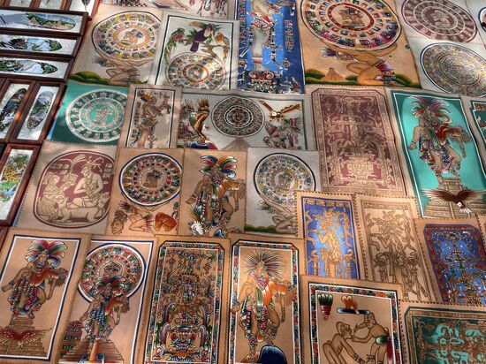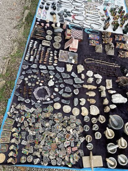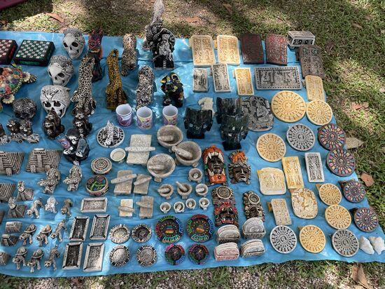 Unter einem hohen dicken Baum haben ein paar Souvenirhändler ihre Arbeiten ausgebreitet. Viele Mayasymbole, Sonnensymbole, Steinanhänger, Edelsteine, Halsketten, Armbänder. Später, verspreche ich einer jungen Frau, später werde ich mir deine Maya-Sternzeichen näher ansehen.