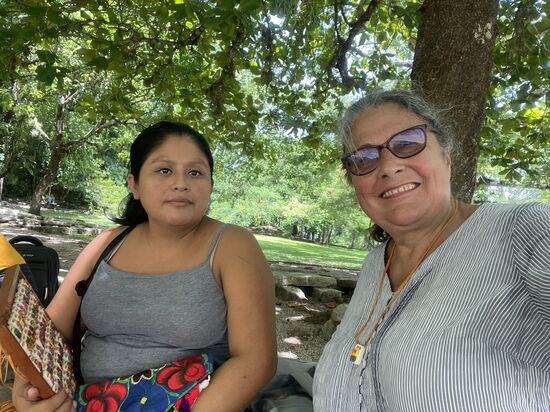 Beim Tempel El Compte setzen wir uns erst an den Waldrand, bestaunen die hohe Konstruktion, die breiten Stufen, den Raum ganz oben, von wo der Herrscher zu seinen Untergebenen gesprochen hat. Oder der Hohepriester. Hier wurde auch Menschen geopfert, aber ich merke, Jorge will das gar nicht so expliziet aussprchen. Auch nicht, als er mir den Ballspielplätz zeigt. Hier wo die Gegner mit dicken Kautschuckbällen gegen einander spielten. Der Gewinner wurde geopfert. Vielleicht war es auch der Verlierer. Vieles in der Mayakultur ist noch nicht so genau erklärt. Die Schrift, Glyphen genannt wurden zu einem grossen Teil erst in den letzten Jahren erforscht. Man kann mindestens Daten und Namen der Herrscher heute eindeutig erkennen und zuordnen.