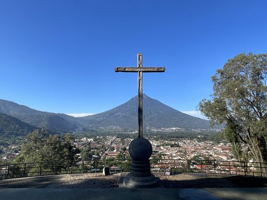 Tatsächlich ist es ein Traumtag, der schönste bisher. Der Agua präsentiert sich komplett ohne Wolken und die Sicht vom Cerro del Cruz ist fantastisch.