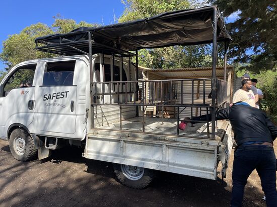 Ich finde das etwas kleinlich von der Parkverwaltung, sehe aber kurz darauf ein, warum das so gehandhabt wird. Wir sind nämlich noch gar nicht am Ziel. Wir sind nur beim Parkplatz, ab hier geht es mit dem Pickup weiter. Wir steigen auf die Ladefläche und sind die ersten. Kurz darauf kommen noch drei Amerikaner dazu und die Fahrt kann losgehen. Es geht noch einmal richtig steil hinauf. Auf ganz schmalen Wegen, am steilen Abhang. Hoffentlich weiss der Fahrer was er tut. Er weiss es, er fährt da jeden Tag mehrmals hinauf. Endlich sind wir am richtigen Ziel. Am Eingang zum Vergnügungspark Hobbitenango.