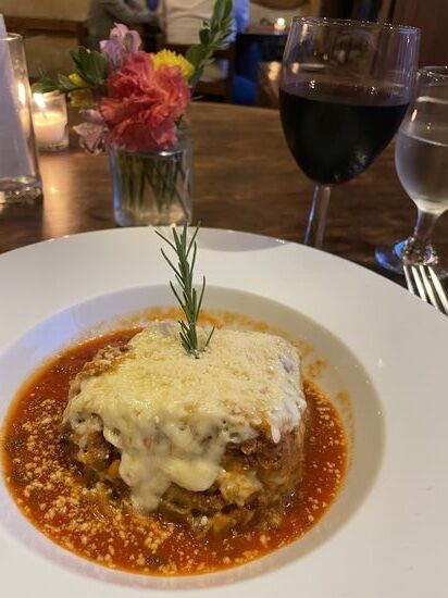 Am Abend kehre ich in einem schönen Lokal in der Nähe des Arco ein. Eine feine Lasagne mit einem guten Glas Wein. Was will man mehr.