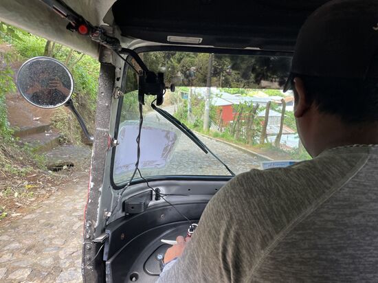 Doch heute wollen wir weiter hinauf, heute lohnt sich der Ausflug. Die Strasse steigt steil an, ich bin überrascht, dass das Tuctuc diese Steigung überhaupt schafft. Nicht alle Auto schaffen das, lacht Tomas, aber mein Tuctuc ist stark, ich fahre fast jeden Tag da hinauf.