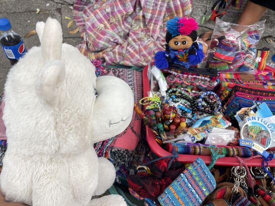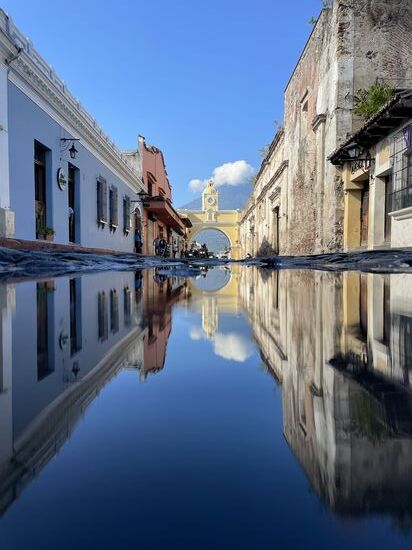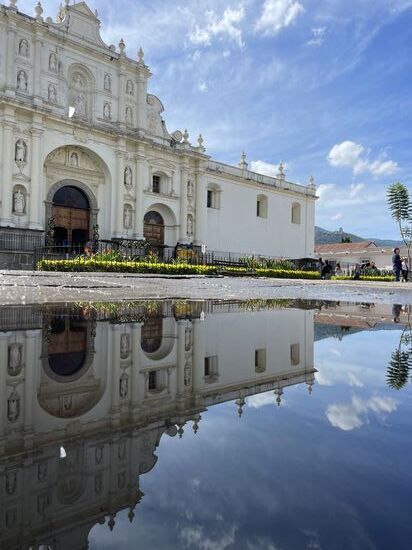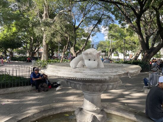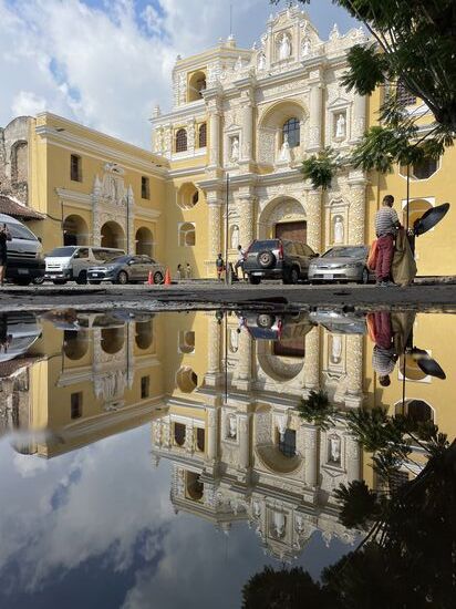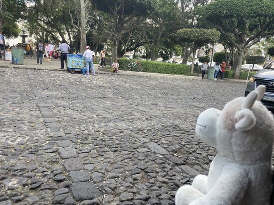 Viel mehr interessieren mich heute die Pfützen, die vom Regen in der Nacht in den Strassen stehen geblieben sind. Werde richtig süchtig darauf und lasse Seen entstehen vor dem Arco mit blauem Wasser und vor der Kathedarale, der Merced und bei den Marktständen, die neben dem Park aufgestellt worden sind und wo viele Handarbeiten angeboten werden.