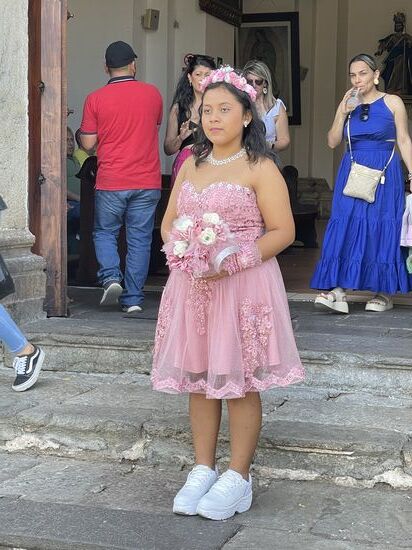 Vor der Kathedrale treffe ich noch einmal auf zwei 15-jährige Mädchen. Beide sind gross herausgeputzt aber die Unterschiede sind enorm und ungemein spannend, was sich die Familien ein solches Fest kosten lassen. Wobei das mit dem Fest nicht so klar ist. Als ich dem Mädchen in ihrem rosa Hochzeitskleid ein schönes Fest wünsche, erklärt mir ihre Mutter, das Fest würde erst in zwei Wochen statt finden. Heute ginge es nur um die Fotos.