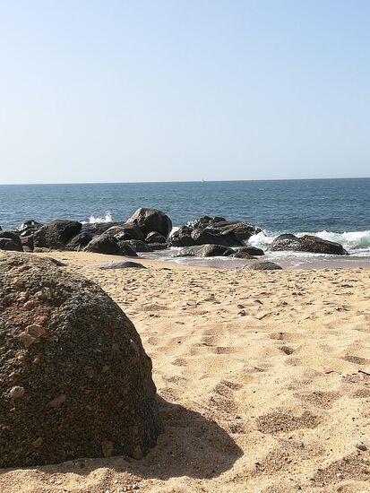 Bis jetzt haben wir es noch nie länger als vier Nächte an einem Ort ausgehalten, und das ist auch in Zambujeira do Mar der Fall. Der Ort ist überschaubar groß, und auch wenn die Küste und die Strandbuchten wunderschön sind, gibt es nichts, was uns länger hier festhalten könnte. Allerdings waren wir hier seit langer, langer Zeit mal wieder gut essen - im Restaurant Shaan, der beste und nun unser Lieblings-Inder im Ort! Man mag einwenden, dass es sowieso nur einen einzigen Inder in Zumbajeira gibt, aber das ändert nichts an unserer Meinung! Die Atmosphäre war spartanisch indisch, das Essen saulecker - auch die uns unbekannten "Chamuça", die wir aus Neugier zum Schluss noch bestellten und die sich dann als "Samosa" herausstellten. Es bestätigte unsere Erfahrung, die wir schon an vielen Orten der Welt machen konnten: indische Restaurants sind immer eine gute Alternative! Im übrigen wimmelte es in Zumbajeira von Indern – vermutlich Erntehelfer in den zahlreichen Treibhäusern, die es hier im Hinterland gibt. Wie sie alle es ausgerechnet hier in den tiefsten Westen Europas verschlagen hat, bleibt rätselhaft.