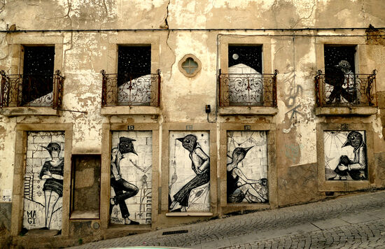 Nach dem Wandertag ging es nach Covilhã im portugiesischen Bergland Richtung spanische Grenze. Seit 2011 findet hier das WOOL-Festival statt, das die Altstadt in eine große Streetart-Gallerie verwandelt. Die Kunstwerke haben dabei meist einen Bezug zu der Stadtgeschichte - Covilhã war einst ein Zentrum der Wollindustrie. Hier braucht man einfach nur durch die schmalen Gassen, über steile Treppen und kleine Plätze bummeln, um immer neue Streetart zu entdecken.