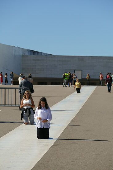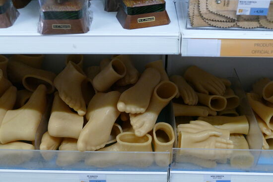 Da der nächste Klettersteig zu schwer und der dritte zu weit abgelegen war, strichen wir den Tagesordnungspunkt "Klettersteig" komplett von unserer Liste und fuhren weiter nach Fátima. Nach unserem Besuch von Lourdes vor drei Jahren und dem Besuch von Santiago de Compostela wollten wir der Liste der heiligen Orte ein weiteres Highlight hinzufügen. Ein wirkliches Highlight war es dann aber nicht. Fátima ist viel zu geordnet, gestriegelt und sauber, so dass keine Faszination übersprang, wie es in Lourdes noch der Fall gewesen ist. Lediglich drei Dinge konnten beeindrucken: zum ersten die Basilika zur Heiligsten Dreifaltigkeit – die viertgrößte Kirche der Welt. Zum zweiten die Leid ausstrahlenden Pilger, die über den gesamten Vorplatz der Wallfahrtskirche – der größte Kirchenvorplatz der Welt - auf Knien zur Erscheinungskapelle rutschen, um diese am Ende nochmals ebenso zu umrunden – eine im wahrsten Sinn des Wortes erniedrigende Weise, seinen Glauben zu bekunden. Und drittens der kleine Shop neben der Erscheinungskapelle, in dem man Kerzen in allen Größen und Mengen zu zugegebenermaßen Spottpreisen kaufen kann - Lourdes war um ein mehrfaches teurer. Was macht man nun mit dem Stapel Kerzen (manche Stangen mehr als eineinhalb Meter lang), mit dem die Pilger nicht nur mit vollen Händen, sondern vollen Armen herauskommen? Man geht gleich nebenan zur überdimensionalen "Grillstation", in der in offenen Schalen Feuer lodert, und schmeißt ihn dort hinein. Fertig. Ich bin mir sicher: das Wachs schmilzt dort, wird aufgefangen, zu Kerzen gegossen und gleich nebenan wieder verkauft – ein Recycling-Kreislauf at its best! Wer dies noch toppen möchte, kann sich im Devotionalienladen im hinteren Teil des Sanktuariums lebensgroße Wachsstücke kaufen in Form einer Hand, eines Fußes, als Ohr, Herz, Leber oder Baby – je nachdem, wo der Schuh so drückt, und dieses dann den Flammen übergeben. Kann ja nicht schaden. Hirn war leider nicht dabei.