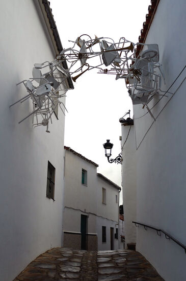 30 Kilometer kurvige Bergstaße, bis wir in Genalguacil sind. Genalguacil mit seinen nur etwas mehr als 400 Einwohnern ist ein Freilichtmuseum, seit dort 1994 damit begonnen wurde, alle zwei Jahre Künstler aus der Provinz Málaga für vierzehn Tage einzuladen, um im Ort ein Kunstwerk zu schaffen. In dieser Zeit sind sie bei Privatleuten einquartiert und werden von ihnen verpflegt. Einzige Bedingung: das geschaffene Kunstwerk verbleibt kostenlos im Ort. So ist dieser kleine Ort, der zu den "Weißen Dörfern" Andalusiens gehört, inzwischen übervoll mit Kunstwerken unterschiedlichster Art. Mittlerweile gibt es zudem das Museo de Arte Contemporáneo, dass die Kunstwerke beherbergt, die nicht unter freiem Himmel ausgestellt werden können. Nicht zum ersten Mal erwischen wir natürlich einen Tag, an dem das Museum geschlossen ist. Aber auch so haben wir sozusagen alle Füße voll zu tun, um die Kunstwerke im Dorf aufzustöbern, denn der Ort ist voller kleiner Gassen, steiler Treppen und Hinterhöfe. Am Ende brauchen wir erneut 30 Kilometer kurvige Bergstraße, um aus dem Tal wieder hinauszukommen. Aber es hat sich gelohnt.