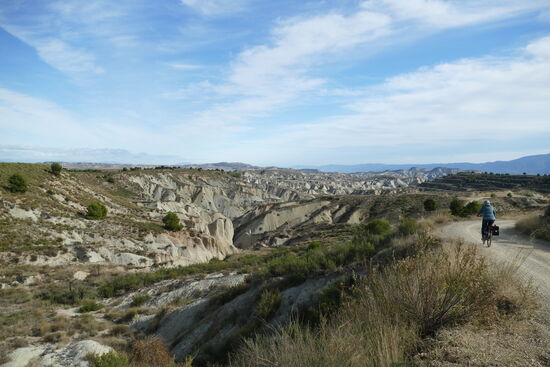 Etwas länger bleiben wir in der Nähe vom Mond. Auf dem Weg nach Xàbia machen wir Halt auf einem netten kleinen Campingplatz mit spanischer Küche in der Sierra Espuña, um wandern zu gehen. In der Nähe des Campingplatzes liegen die Barrancos de Gebas, eine mondartige Landschaft, auch "Badlands" genannt. Einige Wege führen durch diese Wüste, die trockene Luft dieses sonnig warmen Tags trägt dazu bei, sich hier wie auf einem fremden Planeten zu wähnen.