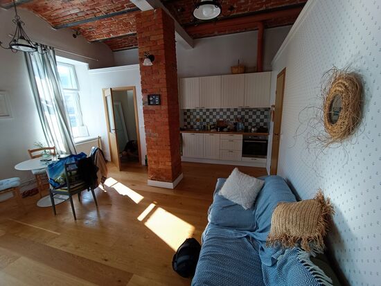 Unterwegs dann noch mit der Vermieterin Kontakt, Schlüsselsafe, also alles ganz einfach. Schnell gefunden und bei der Anfahrt...das soll es sein? Der äußere Eindruck...nicht doll. Innendrin ein Appartment, Wohnraum mit vollständiger Küchenzeile, Schlafraum, Minibad und Sauna - schon ok.