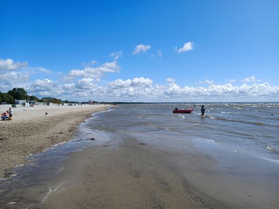 Der Strand riesig breit - natürlich nicht so einsam wie auf Saaremaa, aber auch nicht voll. Das Wasser deutlich wärmer als auf Saaremaa.